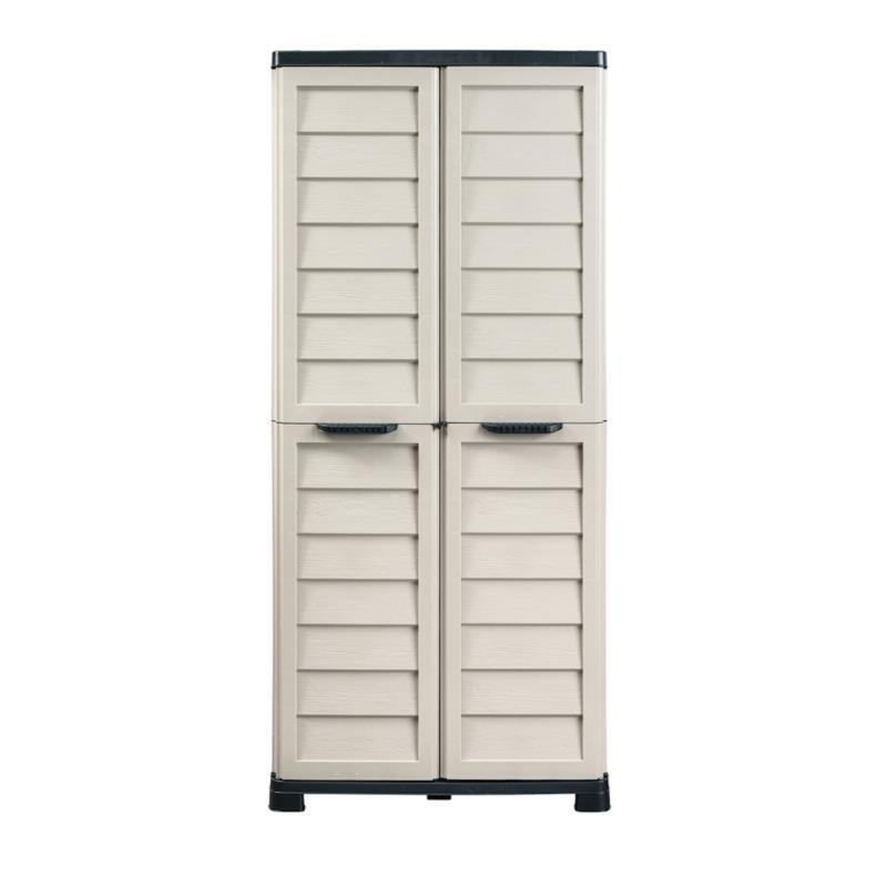 L’armadio RIPONI è perfetto per chi cerca un complemento d'arredo pratico e durevole, senza rinunciare all'eleganza e alla funzionalità: Indispensabile per organizzare, ottimizzare lo spazio e mantenere ordine in qualsiasi ambiente. Dal design effetto legno, il mobile si adatta facilmente a diversi contesti, sia interni che esterni e grazie alla resina con cui è realizzato si pulisce facilmente, basta un panno bagnato nell'acqua. Dotato di tre ripiani regolabili, di maniglie orizzontali per agevolare l'apertura e la chiusura delle ante le quali hanno la predisposizione per la chiusura conlucchetto. Inclusi nella confezione 4 pratici agganci per oggetti da appendere. Realizzato totalmente in resina 100% riciclabile - Ideale per interno e esterno - Design effetto legno facile da pulire - Facile da montare senza ausilio di attrezzi - Portata mensola : 20kg
