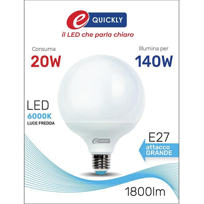 LAMPADINA GLOBO LED G120 E27 20W 6000K