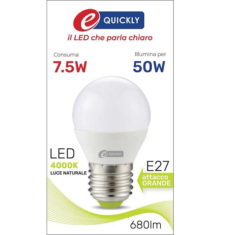 LAMPADINA SFERA LED G45 E27 7,5W 4000K
