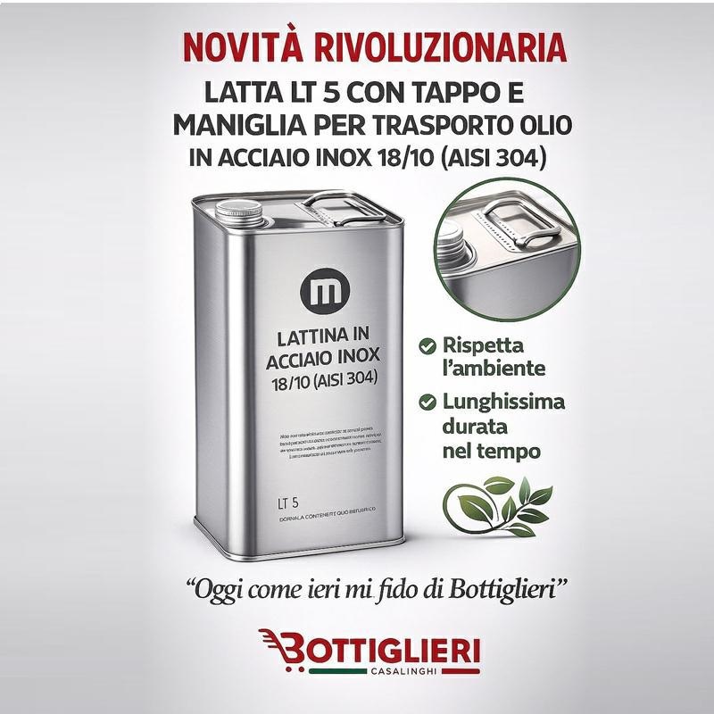 LATTA PER OLIO INOX 5 LT CON TAPPO