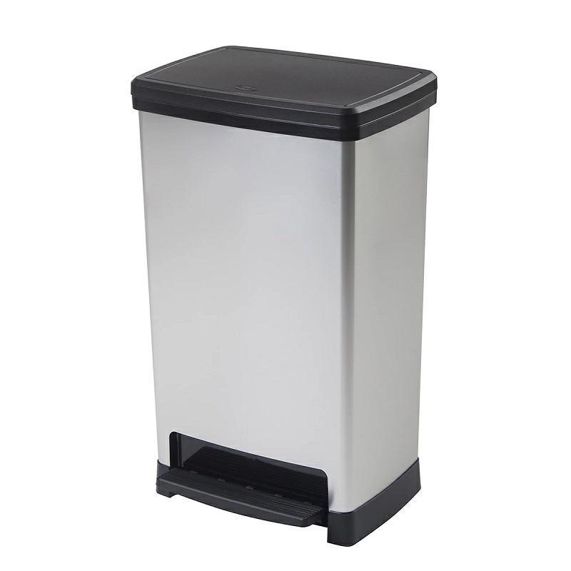 Coperchio integrato Chiusura ammortizzata Resistente alla corrosione,alle impronte digitali e alla ruggine. Caratteristiche e vantaggi Finitura effetto metallo per un look moderno Supporto interno per nascondere il sacco della spazzatura sui lati Capacità di 50 litri, ideale per famiglie numerose. Adatto a sacchi per la spazzatura da 50 litri