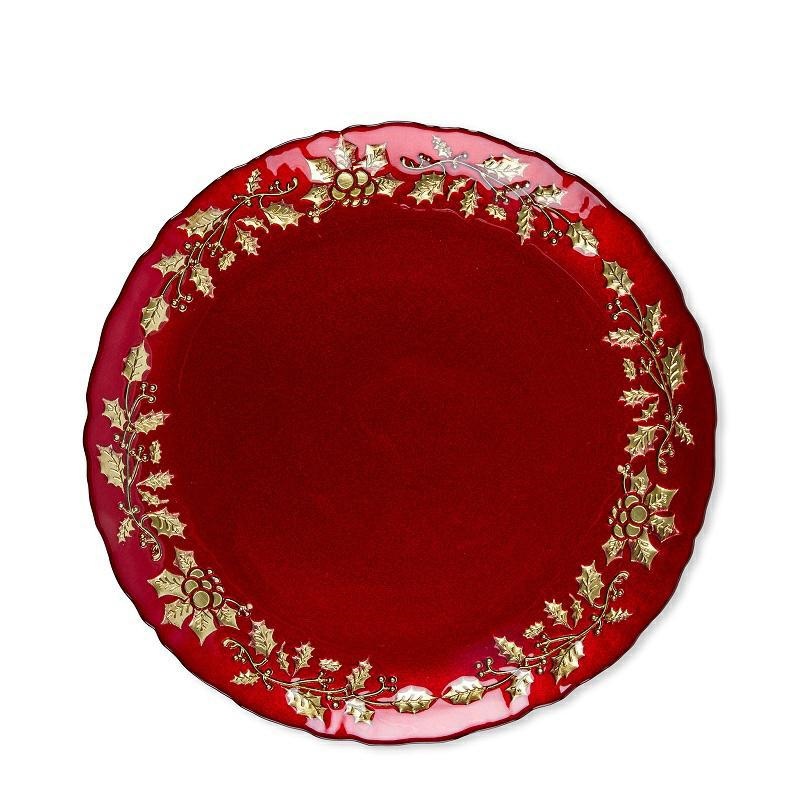 PIATTO TONDO DECORATO ROSSO/ORO IN VETRO D. 33 X H 2 CM