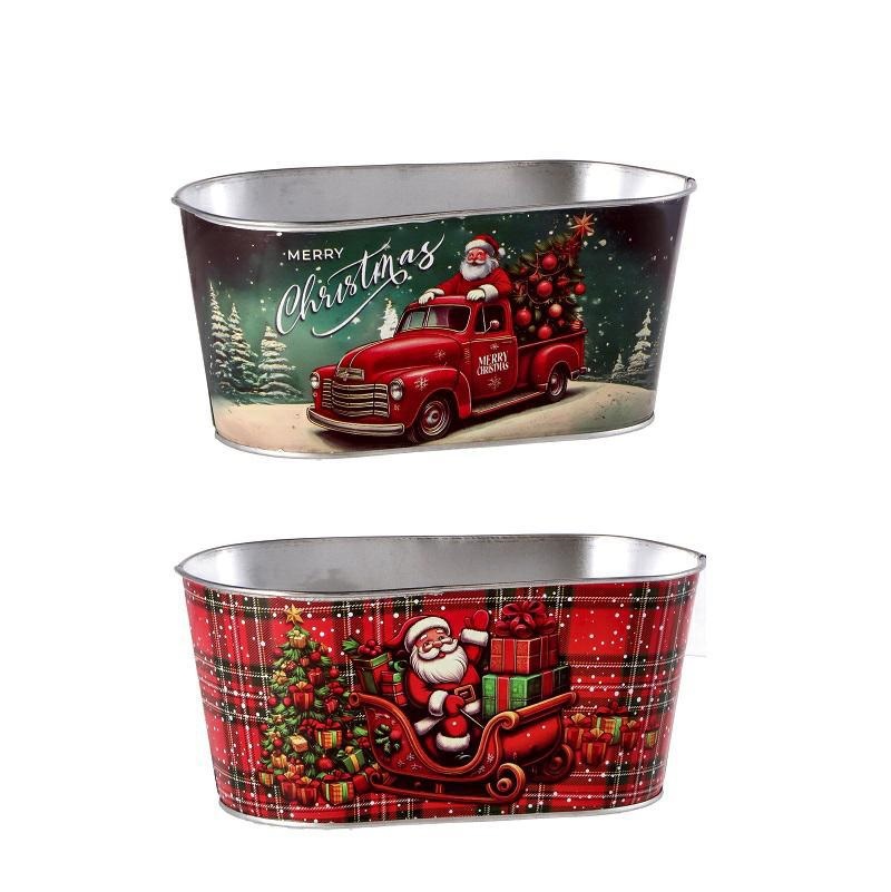 VASO OVALE NATALIZIO IN FERRO 24 X 14 X H 11 CM 2 ASS
