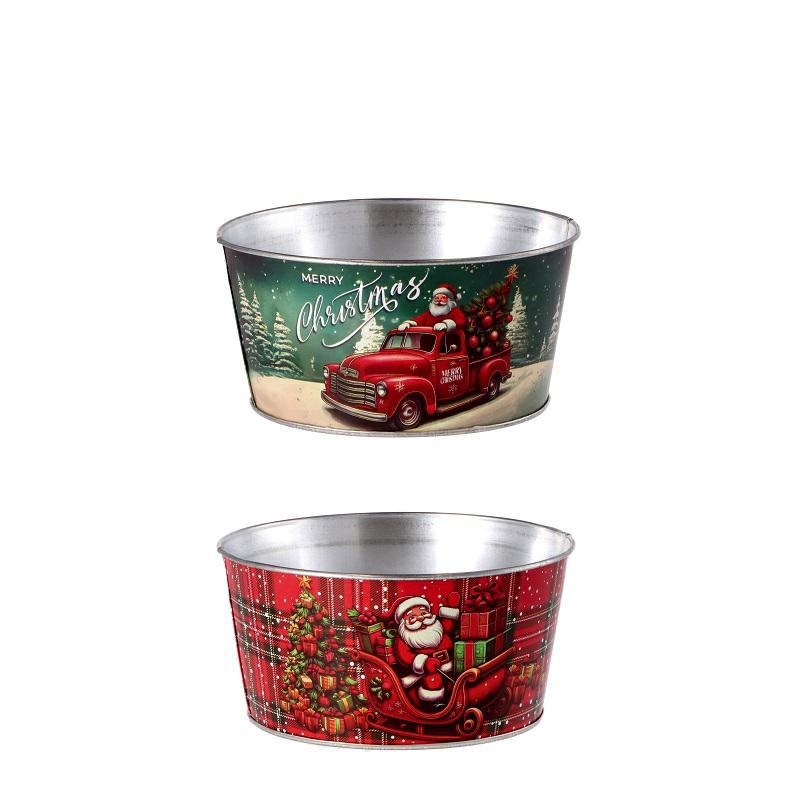 VASO TONDO NATALIZIO IN FERRO D. 18 X H 9 CM 2 ASS