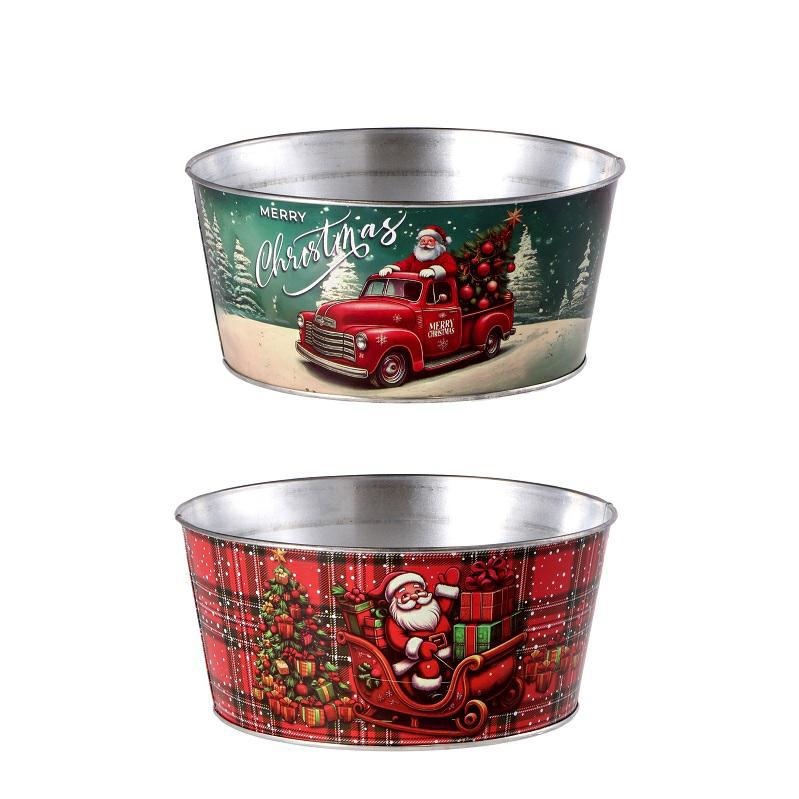 VASO TONDO NATALIZIO IN FERRO D. 22 X H 10 CM 2 ASS